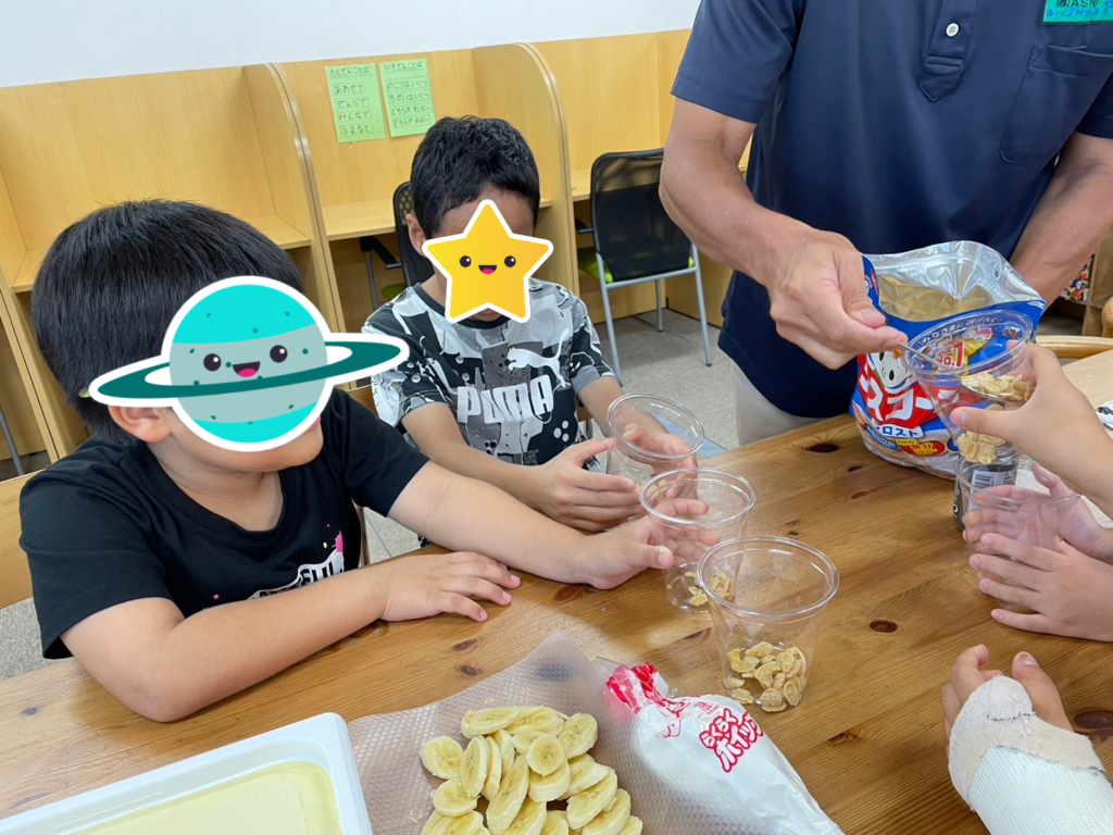 自分で盛り付けたおやつは、いつも以上に美味しいようです(⋈◍>◡<◍)。✧♡