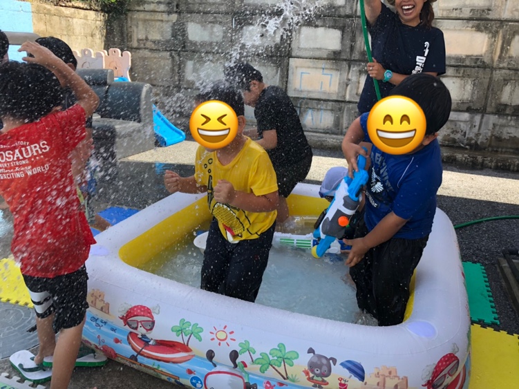 という声に応えて、今日の活動はプール遊びをしました‼