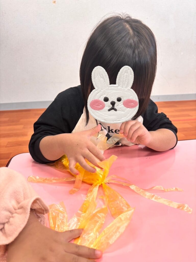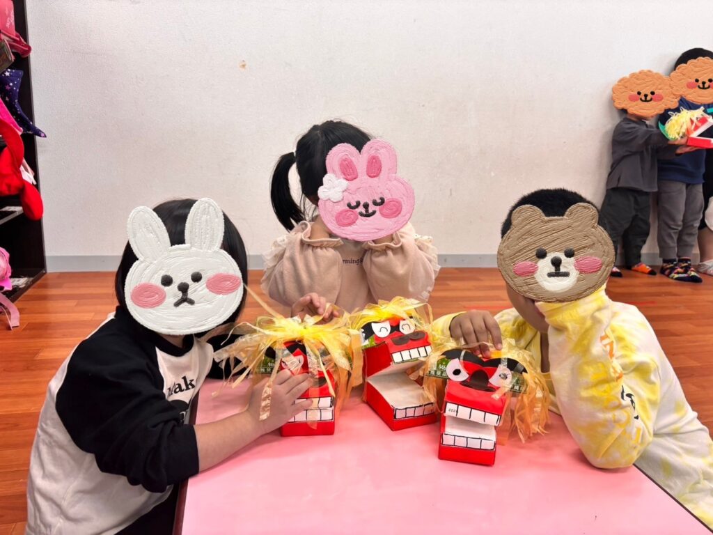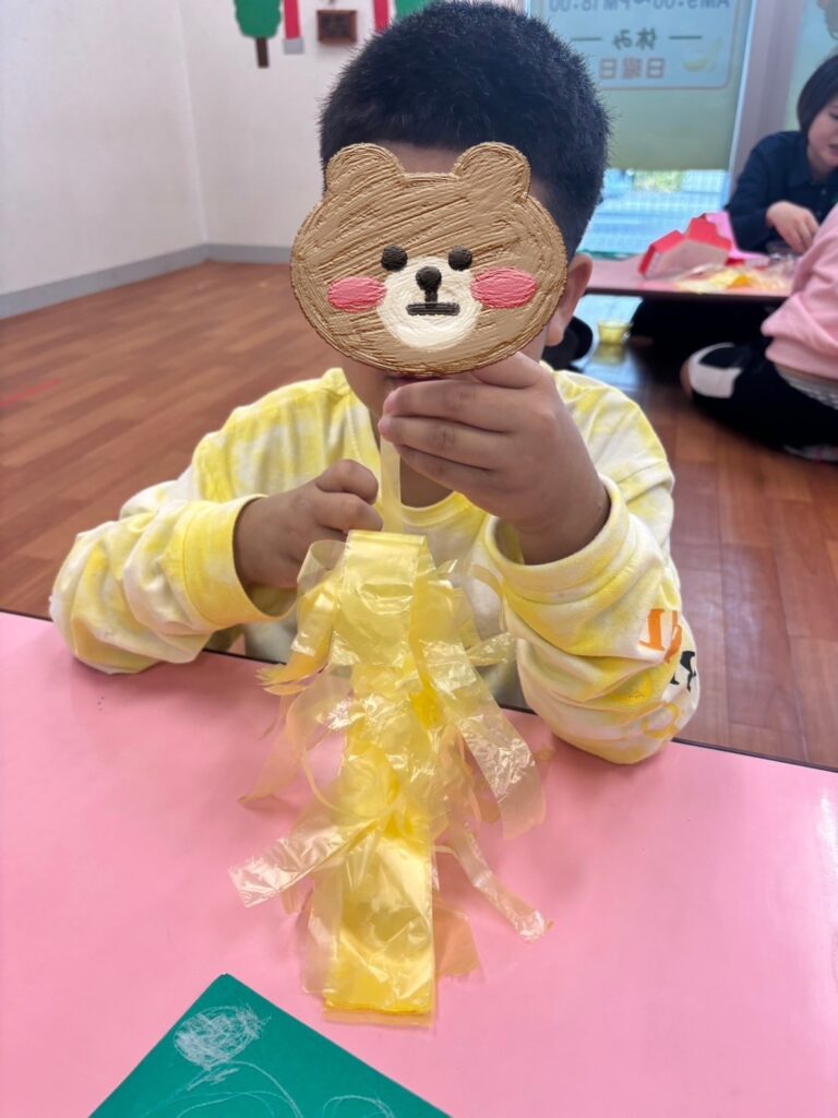 制作後は、制作した獅子舞で遊ぶ子供たちです!