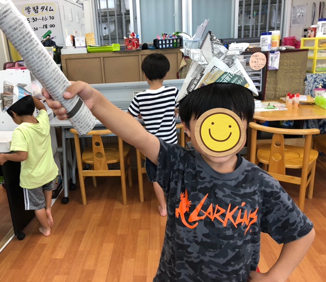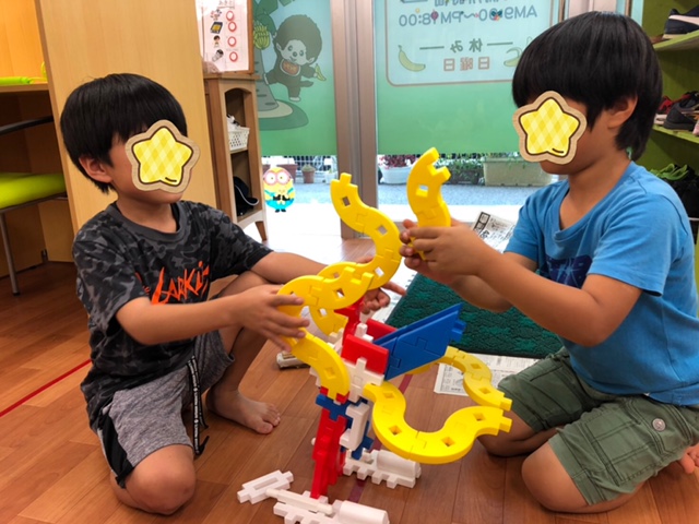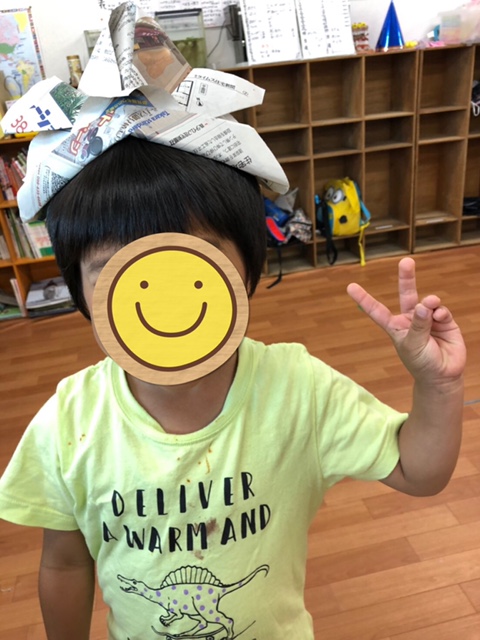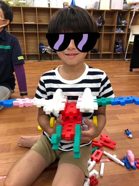 兜を作ったり、ブロック遊びをしたり