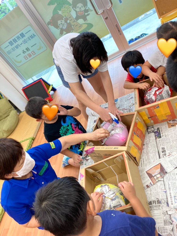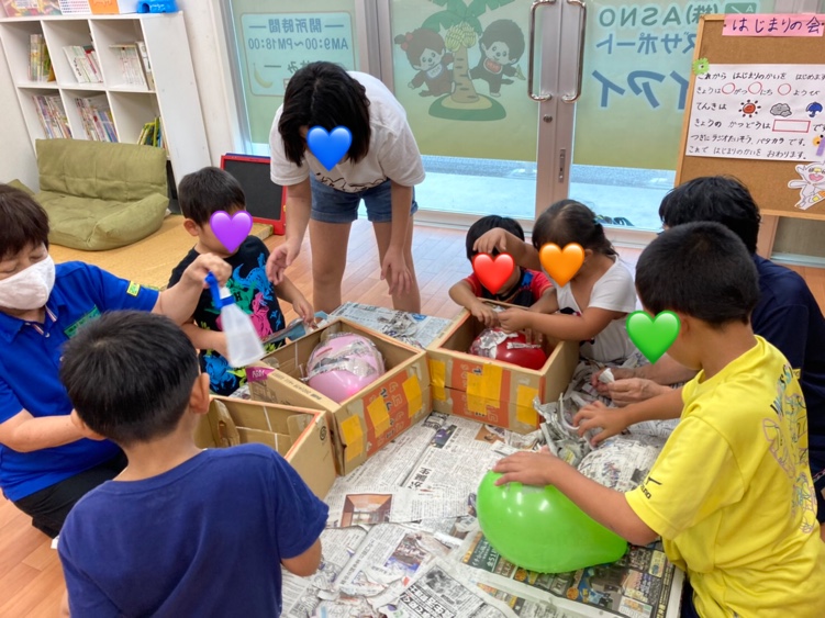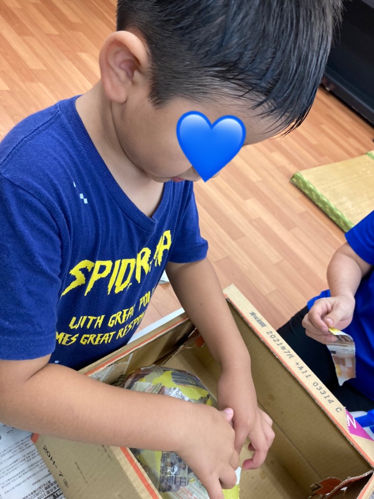 1組さんは初めてお面作りをする子ばかり‼
