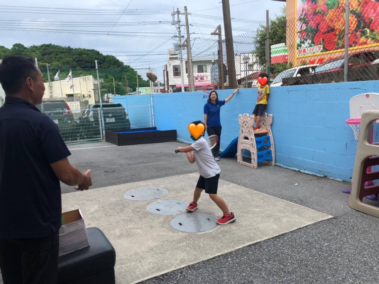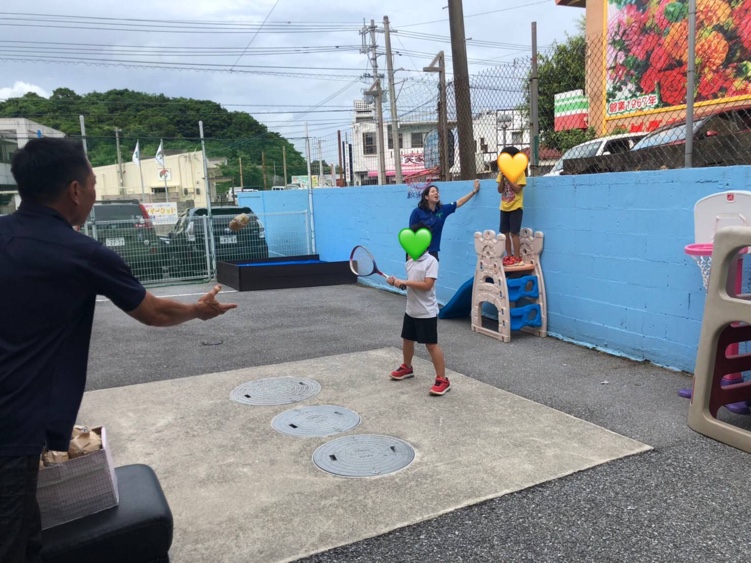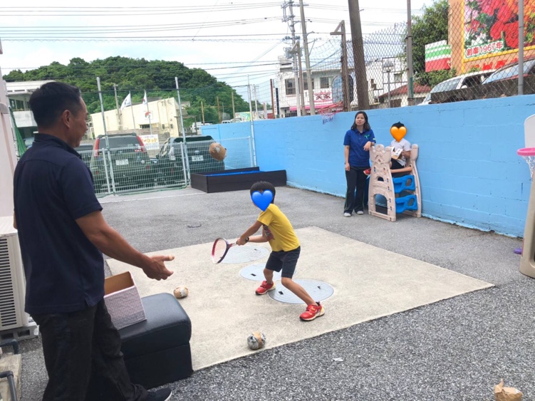テニスラケットで、的当てにチャレンジ(*´▽`*)