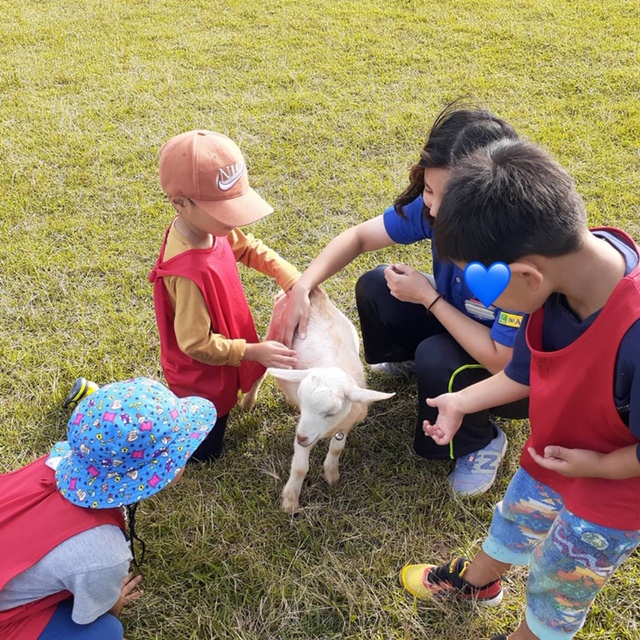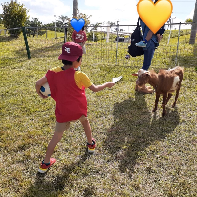 子ども達は優しくヤギをなでたり、餌やりしたりして