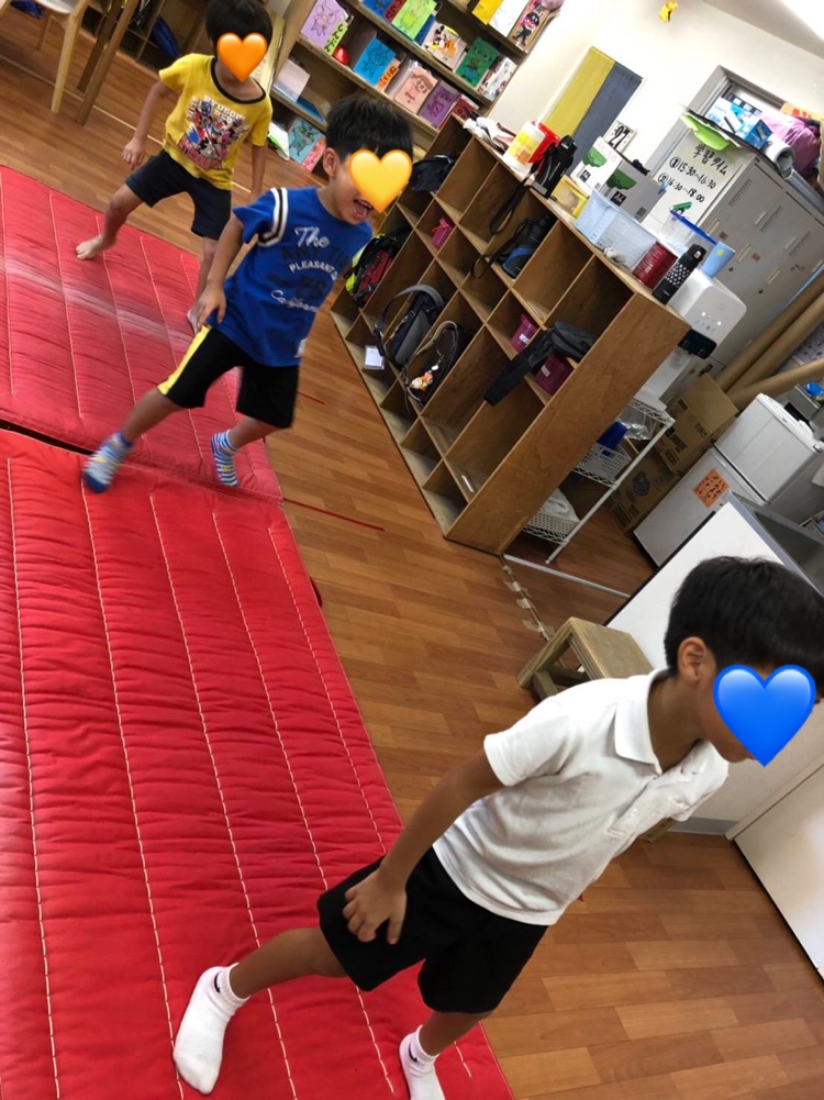 マットの上で指導員の号令に合わせて素早い動きをする認知協応動作‼