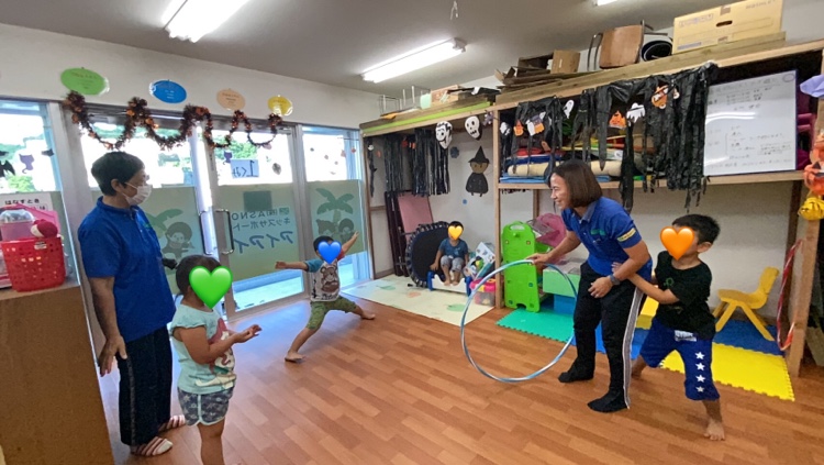 フラフープを使ったビジョントレーニングをしました(⋈◍>◡<◍)。✧♡