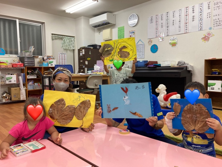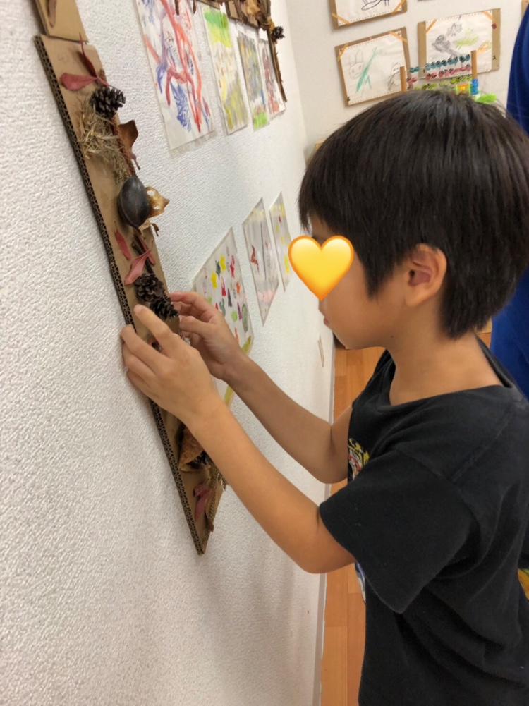 落ち葉で造形遊びをしました!