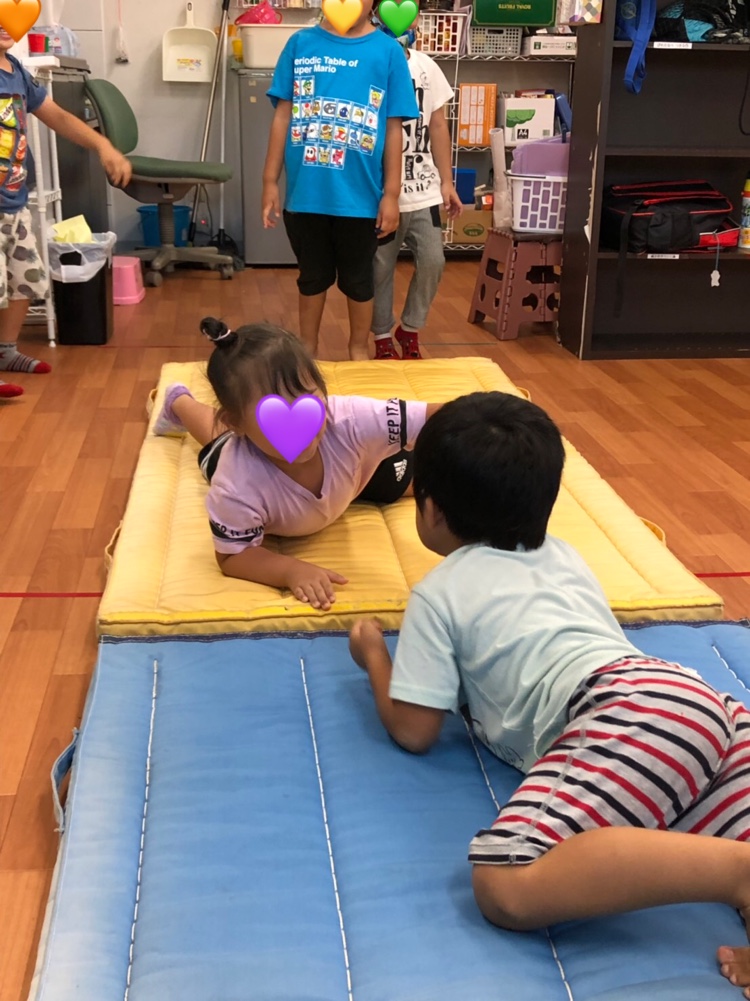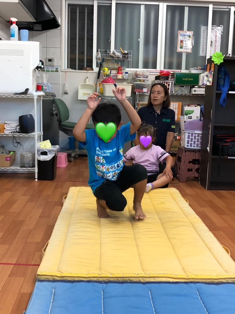 バッタ、にわとり、カンガルーの動作をマットの上で表現します♬
