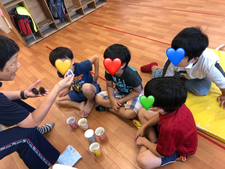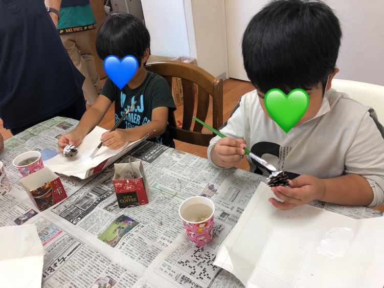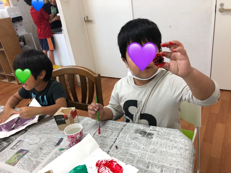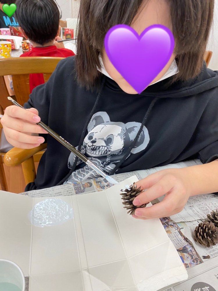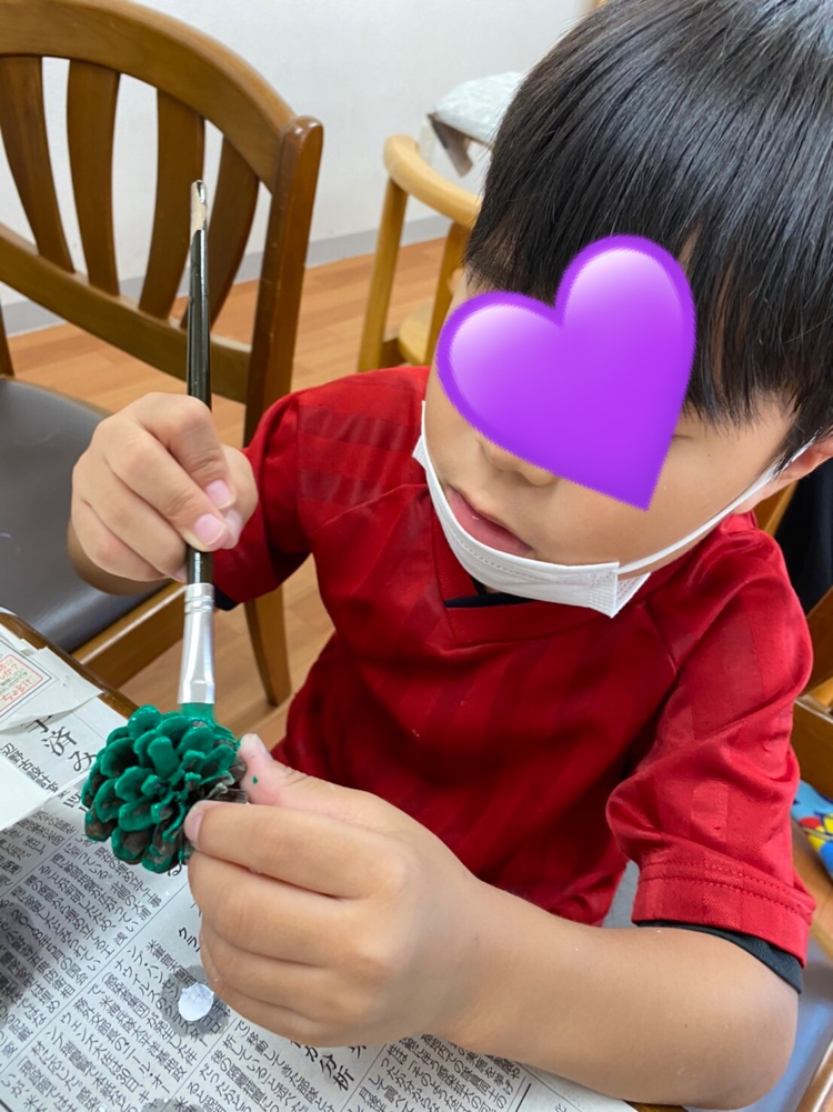 今日はクリスマスに向けての松ぼっくりに色塗りをしました( *´艸`)