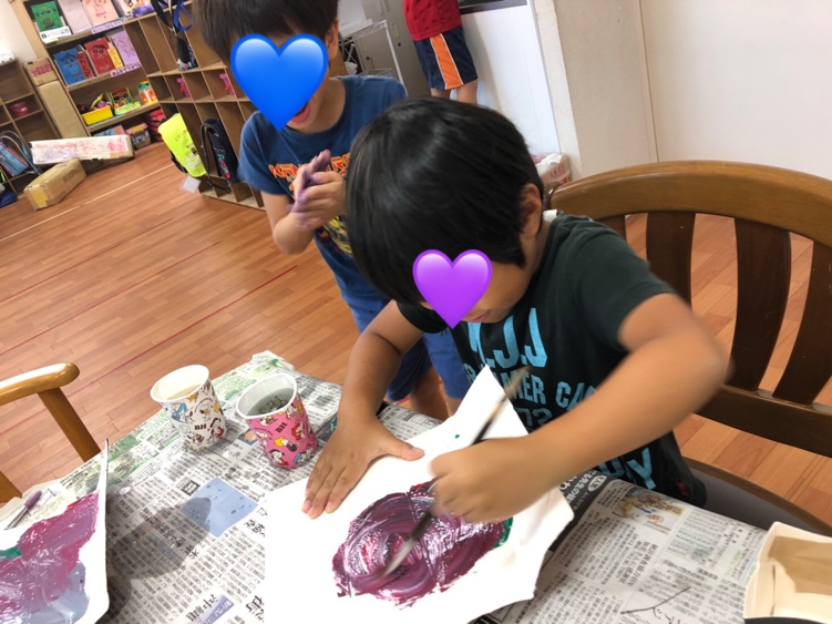色んな色を混ぜて色の変化を楽しんでいる児童もいます( *´艸`)