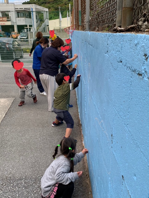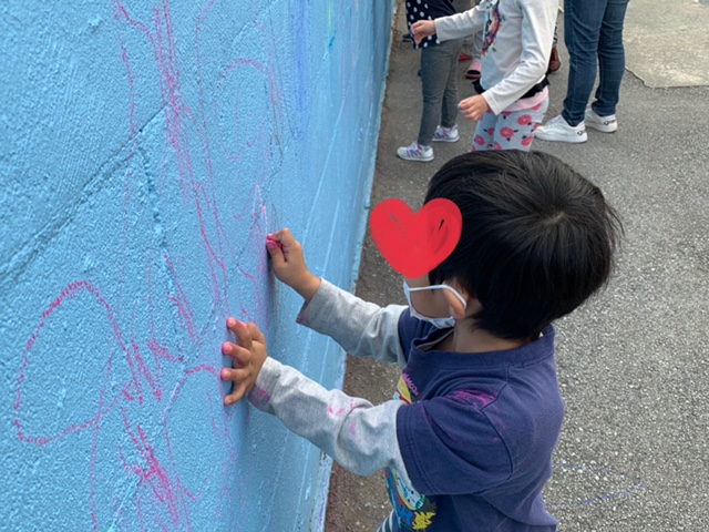 アイアイの外の壁にパステルチョークでお絵かきをしました‼