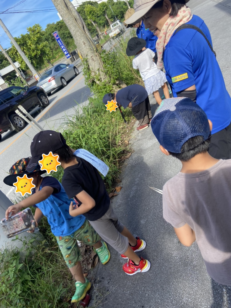 アイアイの周辺歩道にもたくさんのタバコの吸い殻やペットボトルが捨てられていました。どの子も嫌がらずに活動に参加していました✨フリータイムには、久しぶりに「だすまさんが転んだ!」で、キヤーキャーしている姿が見られました❗終わりの会では、口を大きく開けてパタカラのトレーニングです❗❗