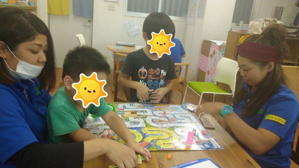 お友達と身長を測りあったり、矢印に名前を書いて貼り付け作業もしました✨フリータイムでは人生ゲームや、お絵かき、縄跳び遊びをしましたよ😊