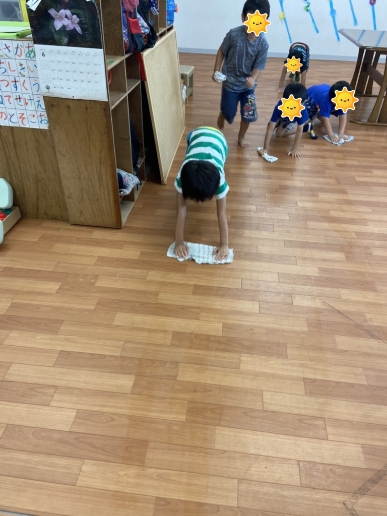 お昼ご飯の後はみんなで雑巾がけ✨一生懸命掃除することができました❗