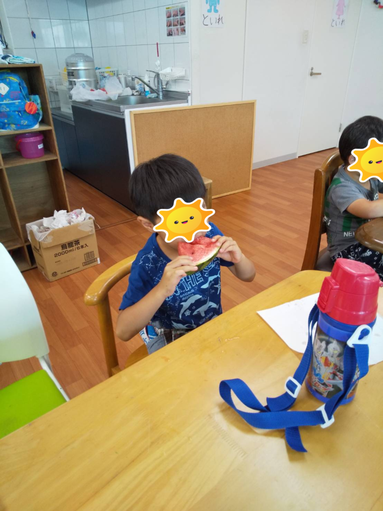 おやつの時間には保護者から頂いたスイカを美味しくいただきました🍉