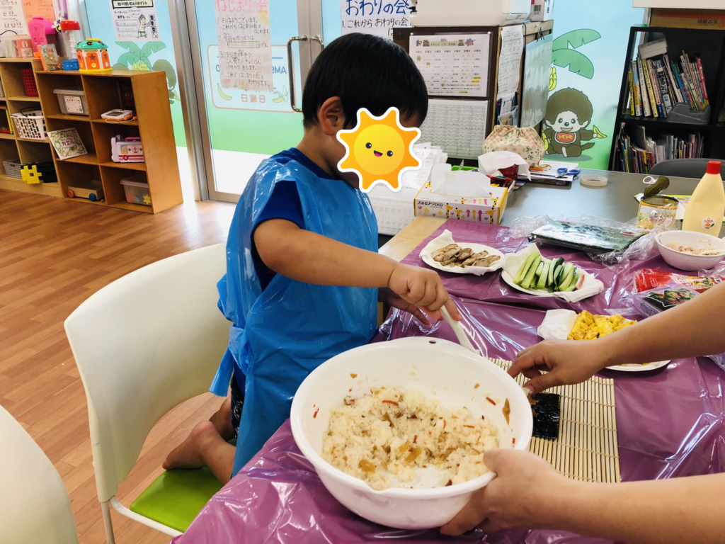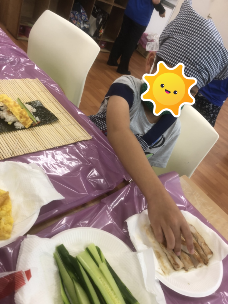 今日のクッキングは、彩り綺麗栄養満点な巻き寿司です🍣具材を選んで作ったお寿司は世界一✨食後はカードゲームで頭の体操🕺