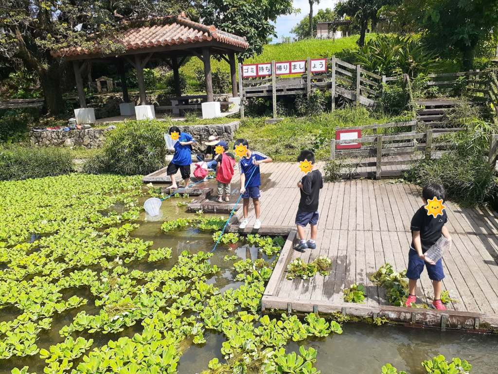 白川公園にて🍀なんと1本の木にセミが100匹一斉に飛び回る光景に大人も子供たちもビックリ😲湧き水の川遊びに、子供たちは元気よく水かけごっこ⛲夏🌴満喫🤗