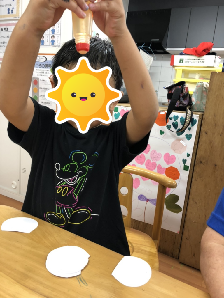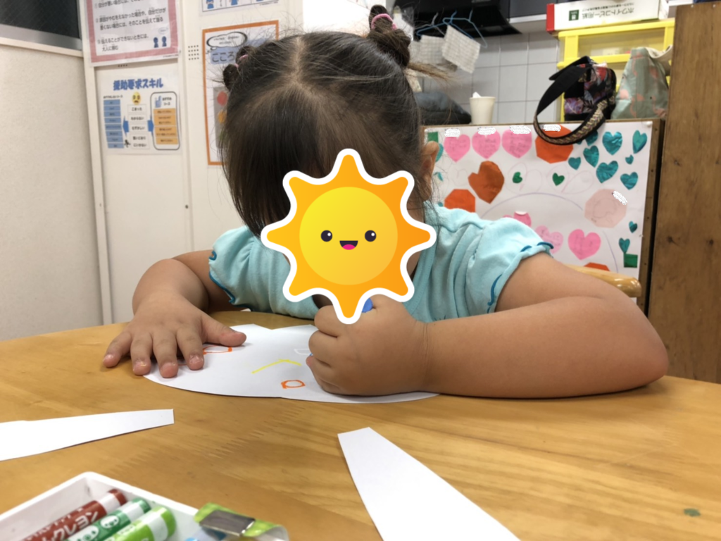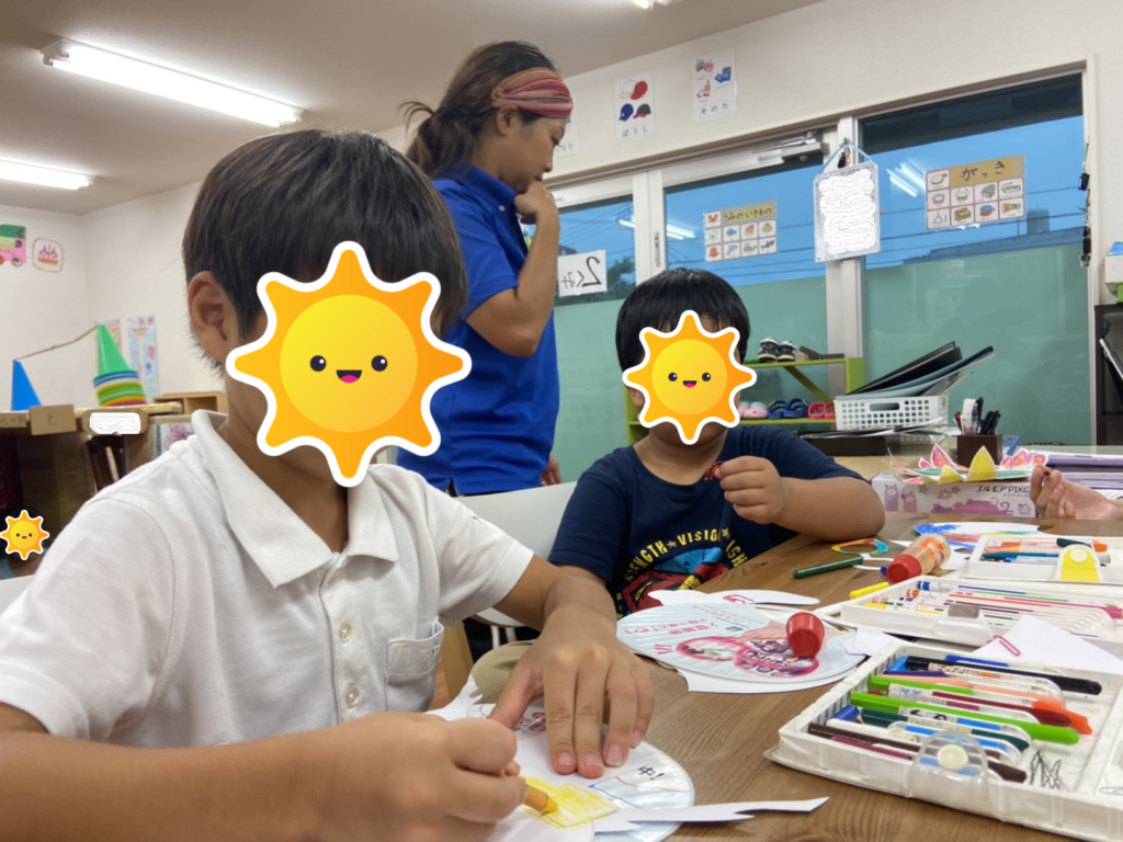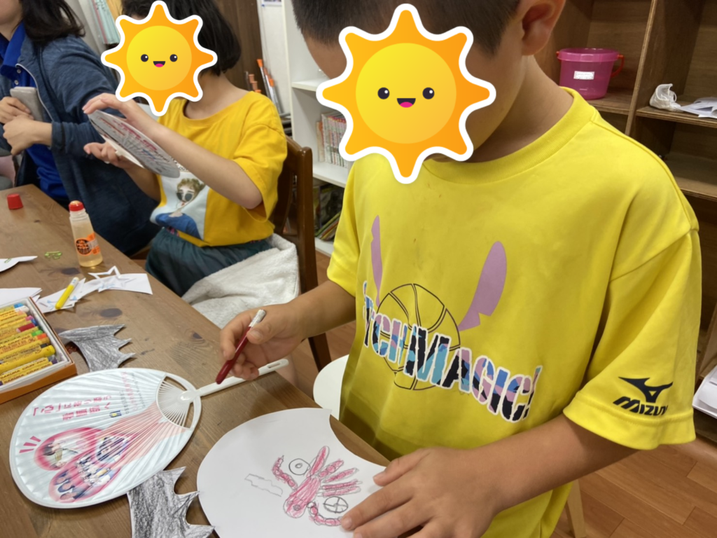 子供たちは絵を描いたり、のり付けなど、創作活動に集中して取り組んでいましたよ✨可愛いカッコイイうちわが完成😊終わりの会ではmyうちわを持って記念撮影をしました😆✌🏼