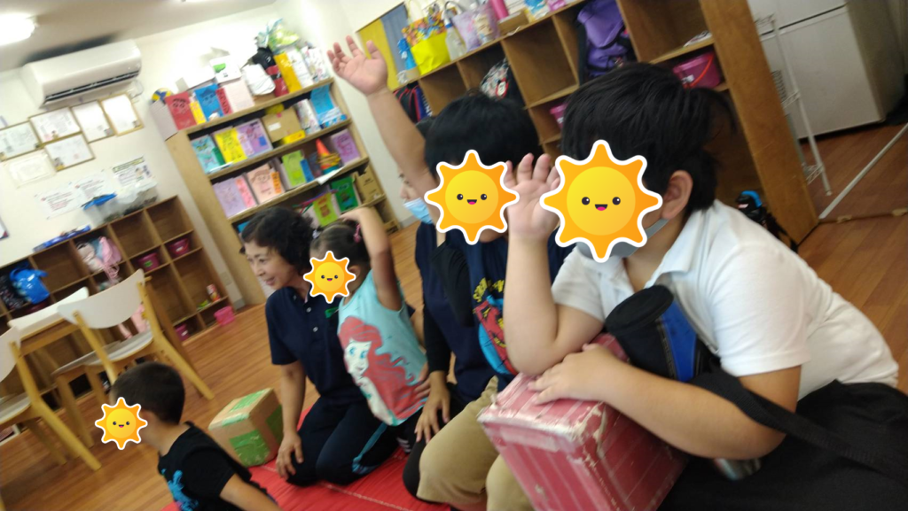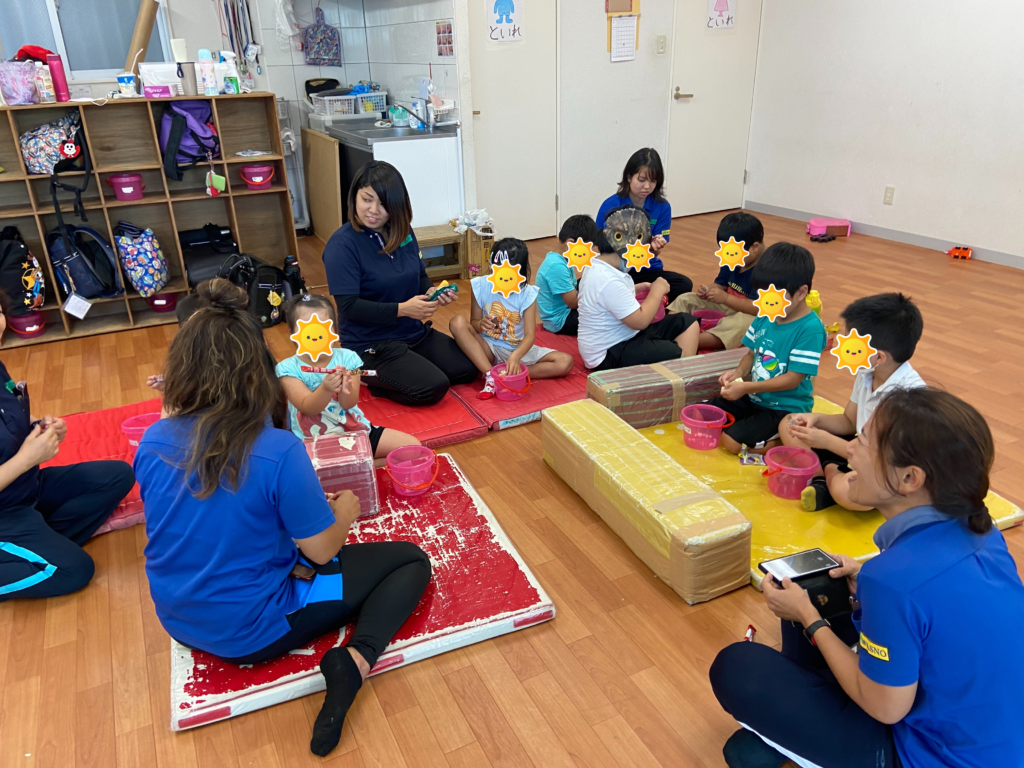 子供たちは前に出て、動物の鳴き声のマネをしたり、乗り物の音のマネをしました🐶🚒「問題を出す→答える」みんなクリアしていましたよ✨✨全員楽しそうにゲームに参加できて、今日も素敵な笑顔がたくさん見れました😊