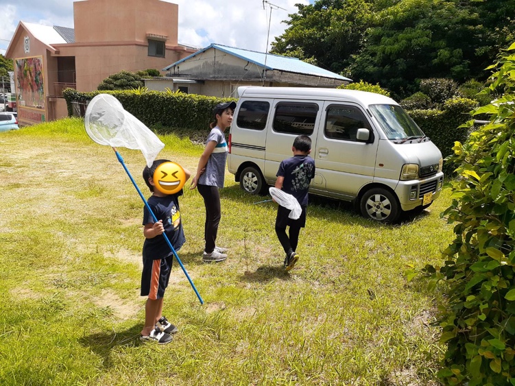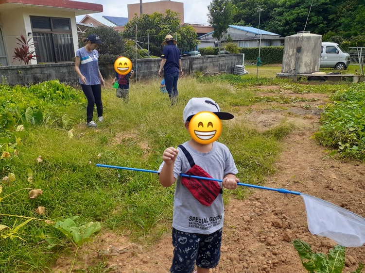 午前中のフリータイムでもアイアイ裏の畑でバッタ・カナブンを素早く捕獲‼