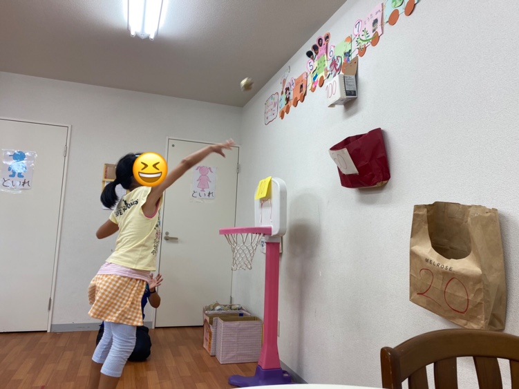 室内では、新聞紙で作ったボールで玉入れ(^O^)/