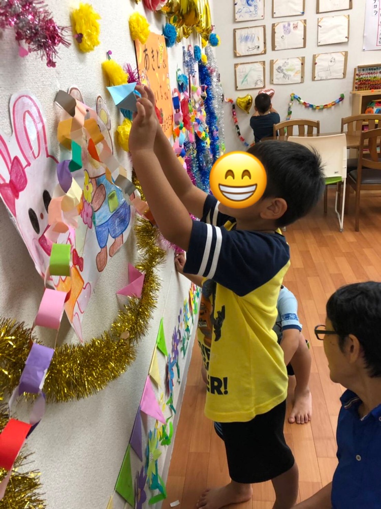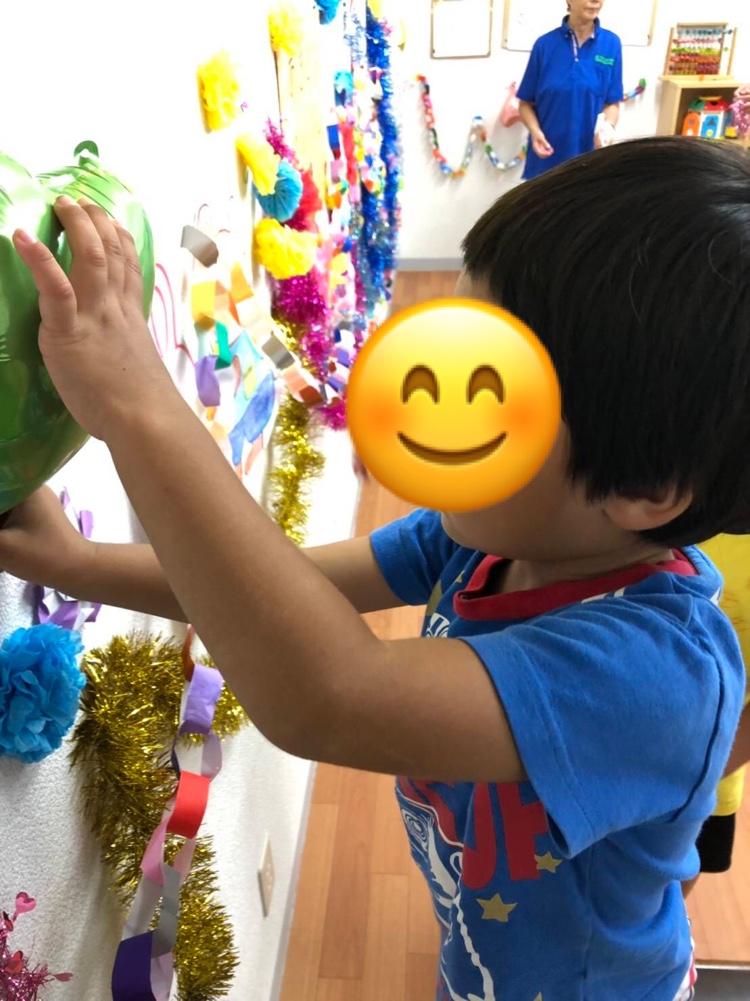 午後の活動は、誕生会の飾り付けを
