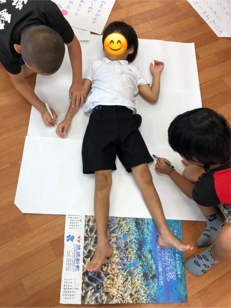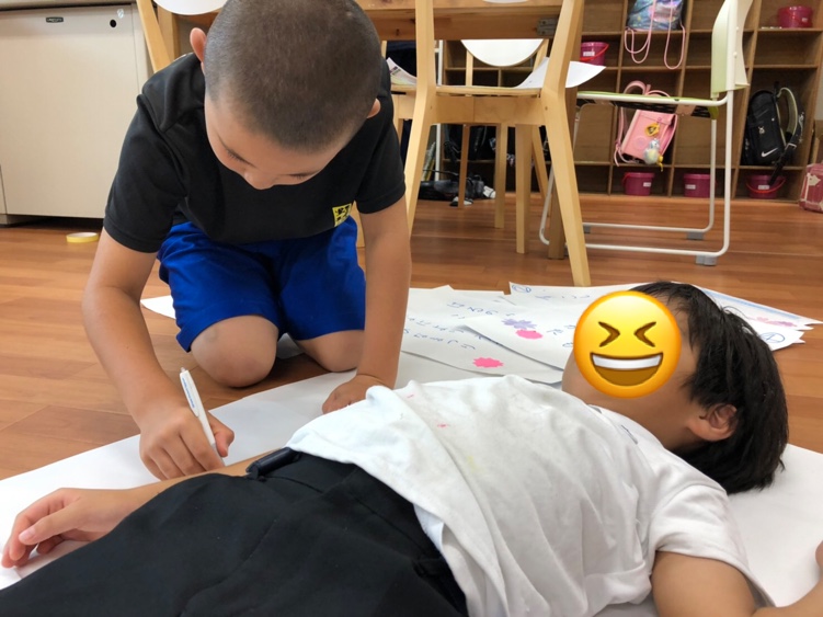 今日の創作活動のテーマは「自分の身体ってどんな形?」