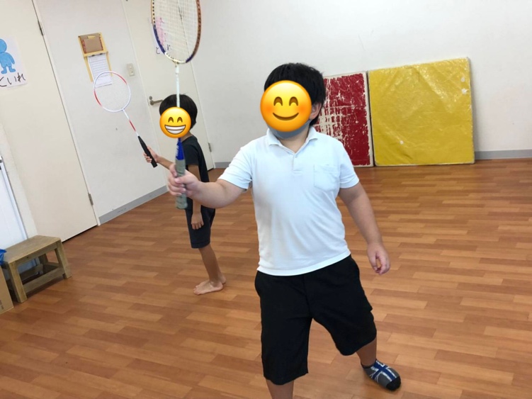スポーツ内容は、バドミントンを指導員とラリーしてます( *´艸`)